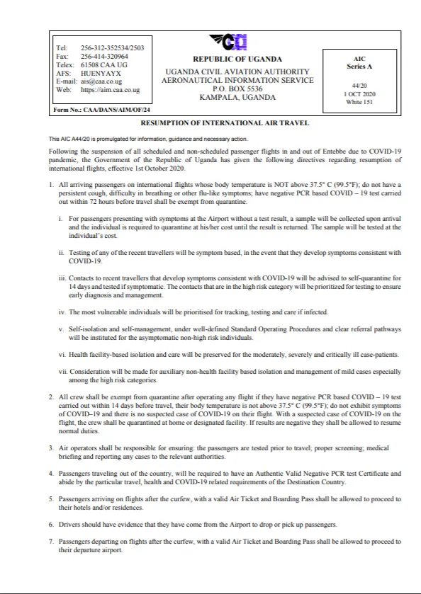 When Uganda’s main international aviation gateway finally opened on the 01st of October, months after our neighbours for that matter, had new protocols and operating procedure been introduced, adding more logistical requirements on wannabe travelers intent to leave the country by air.