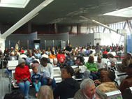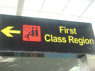 Was there a separate processing queue for First Class passenger? Of course not it turned out, as all travelers were by stern looking and stern acting security officials instructed to line up in what looked like groups of twenty at a go, put our luggage flat on the floor and then stand back three metres – and given their reactions not one foot less.