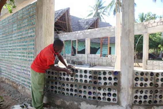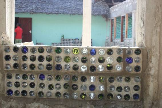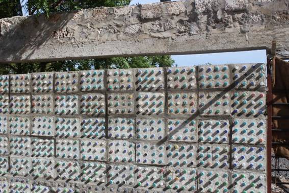 Walls built from waste plastic and glass bottles