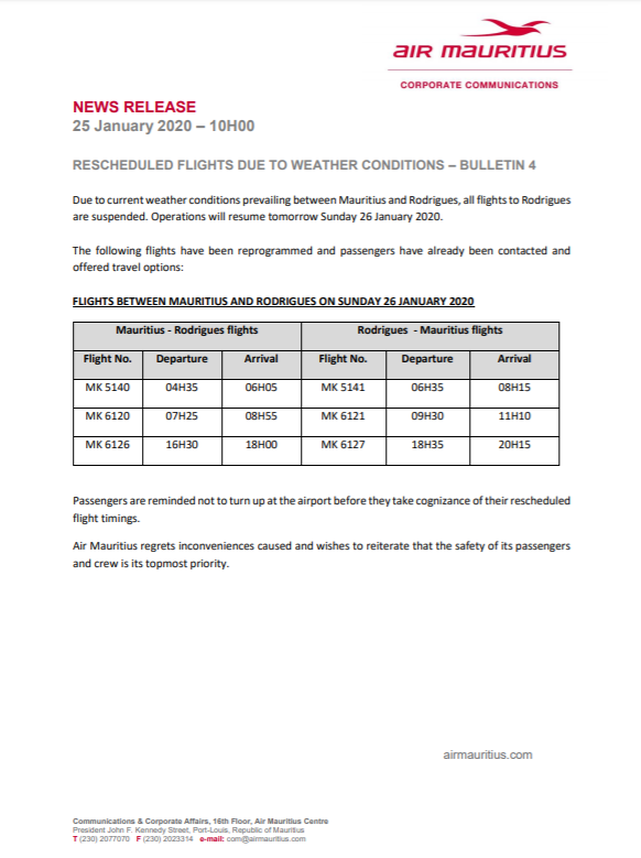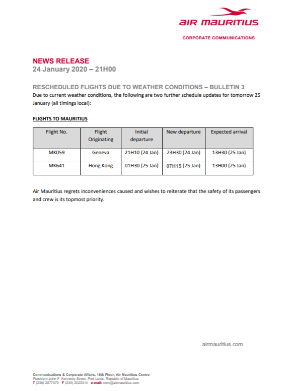 Air Mauritius, and other airlines flying to the island but also to Reunion, will issue additional bulletins to keep travelers informed about any further delays or possible flight cancellations.