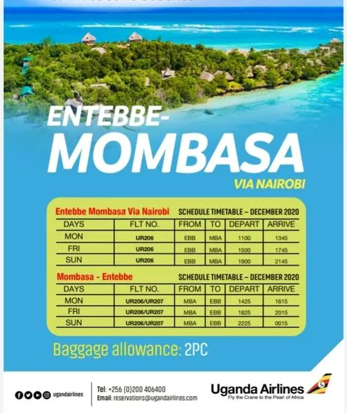Flights on Uganda Airlines are in economy class and travelers are reminded to ensure that they comply with health and safety regulations both in Uganda and in Kenya on departure from Entebbe as well as when returning home.