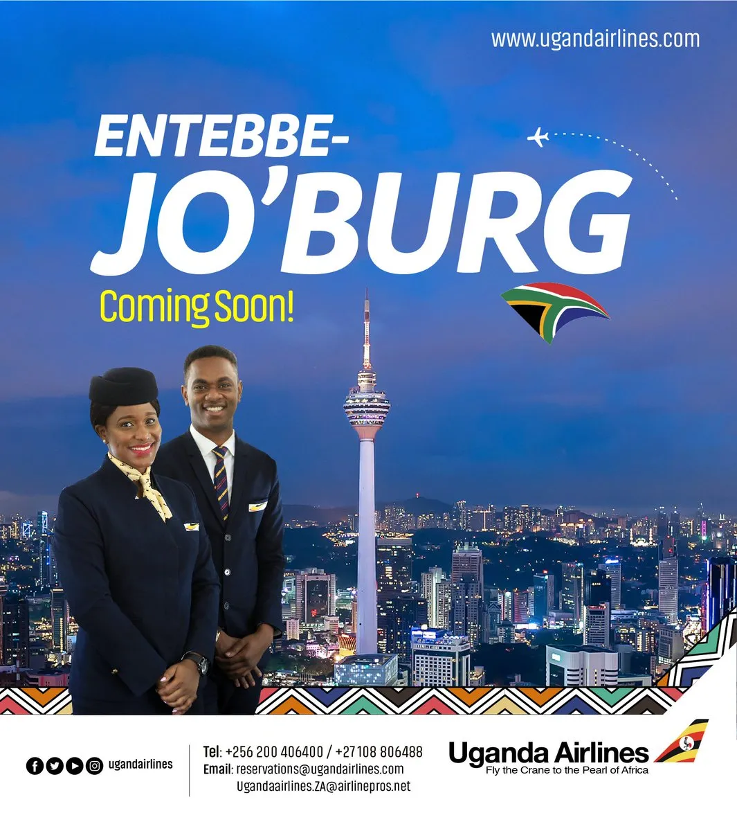 Uganda Airlines will next Monday, 31st of May, launch their long expected flights between Entebbe and Johannesburg.