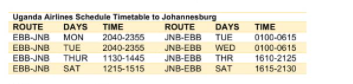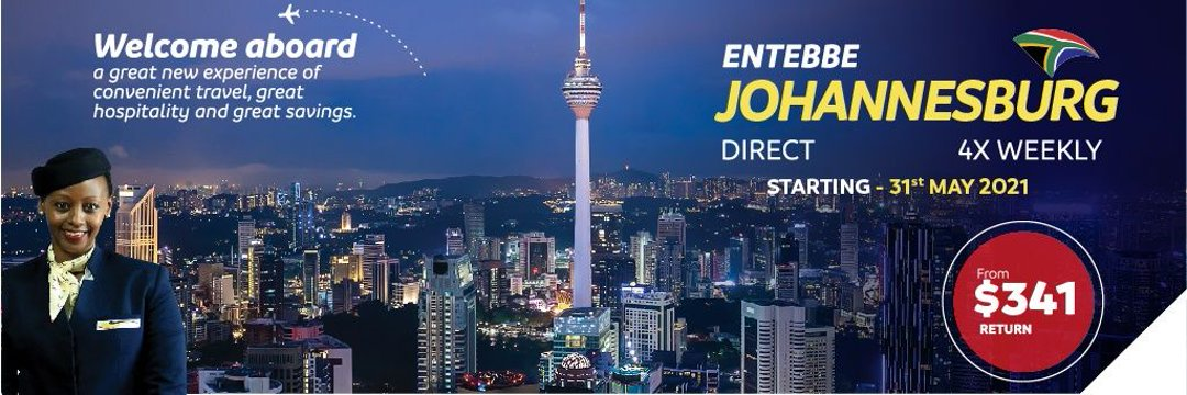 ENTEBBE – JOHANNESBURG DIRECT FLIGHTS 4 TIMES A WEEK