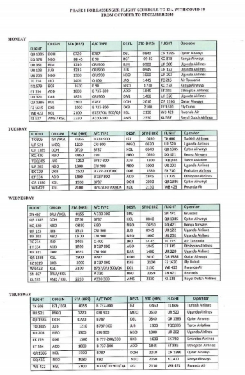 UGANDA CAA ANNOUNCES PRELIMINARY SCHEDULE FOR RESUMPTION OF PASSENGER FLIGHTS AS OF 01ST OF OCTOBER