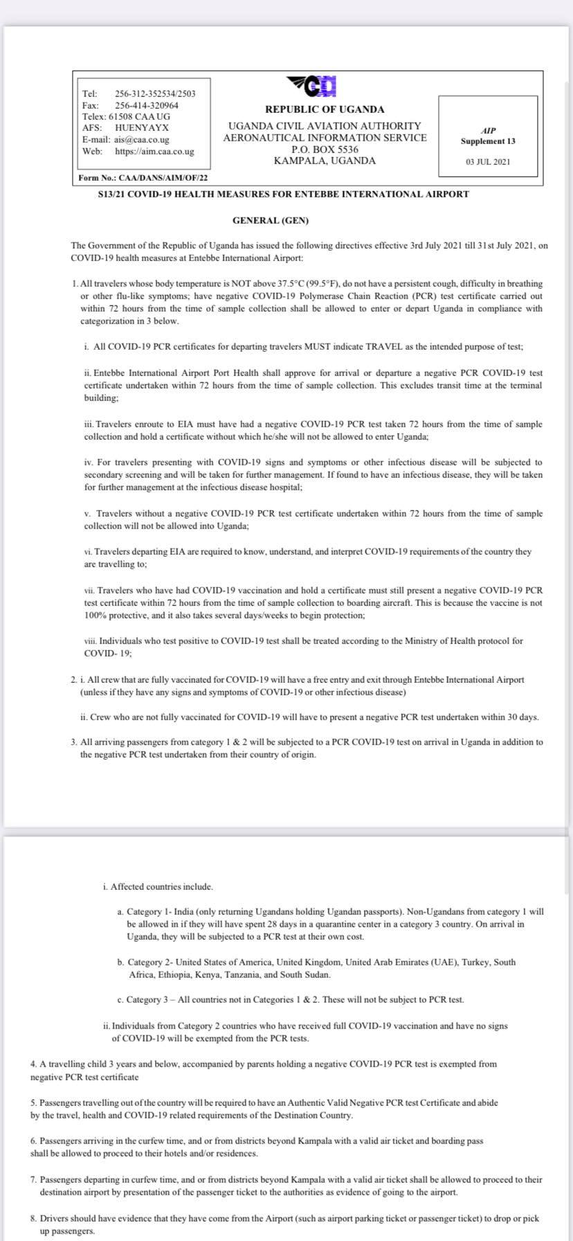 Uganda for a period of time stood out like a sore thumb amongst destination countries, insisting on a PCR test on arrival for passengers coming from Category 2 countries, even if those travelers had been fully vaccinated.