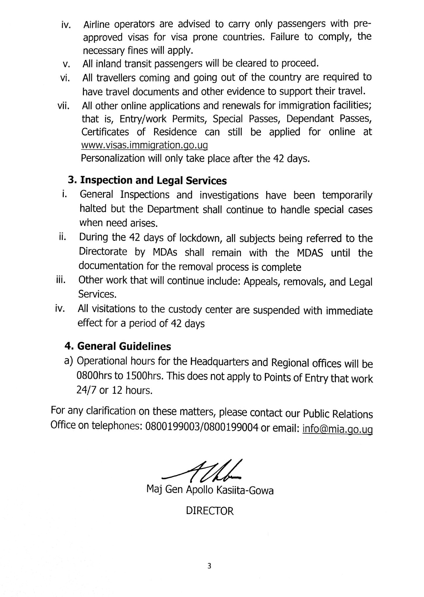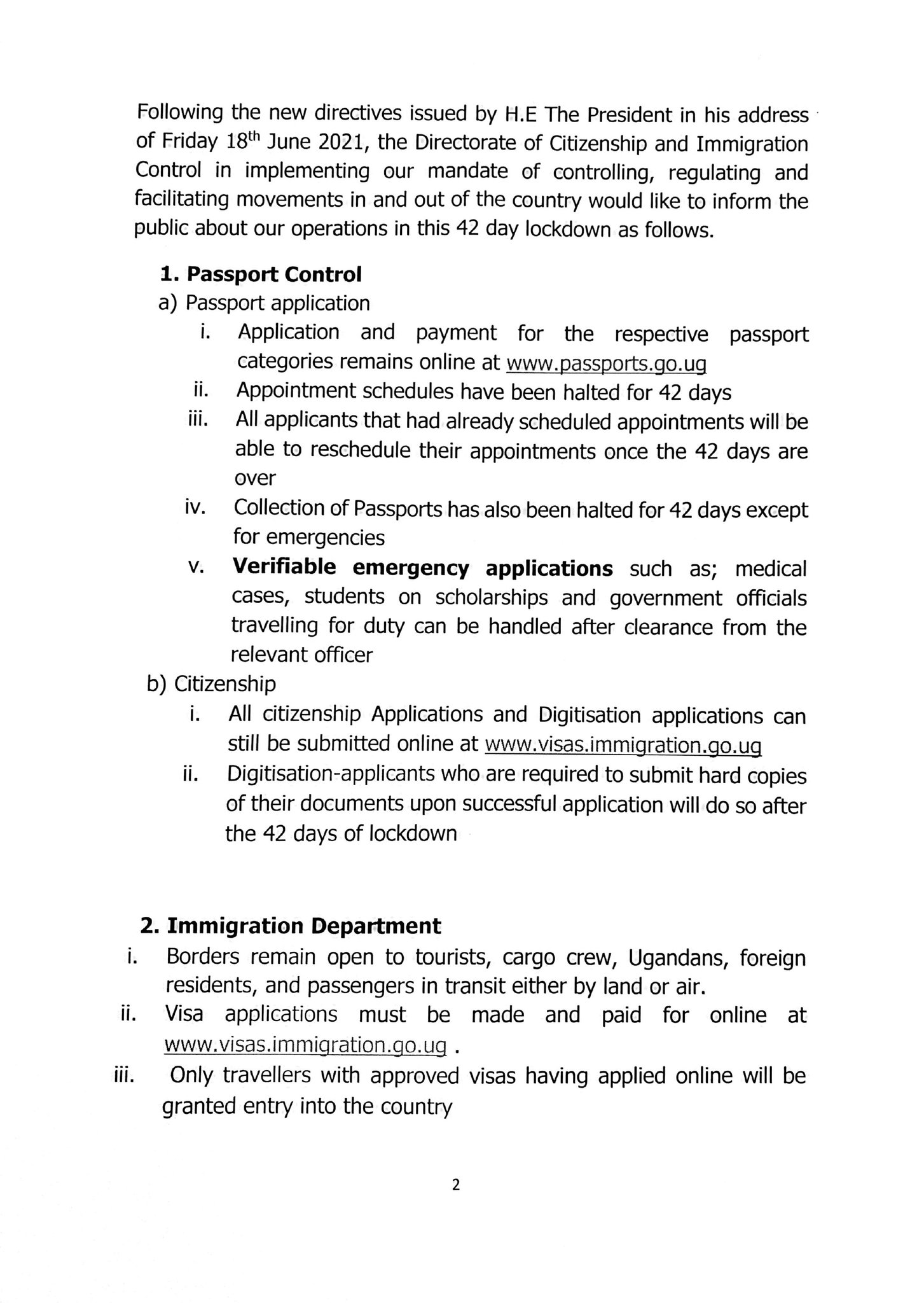 The directive also advises airlines not to uplift any passengers bound for Uganda who do not have their Visa approved prior to departure, or else face a fine.