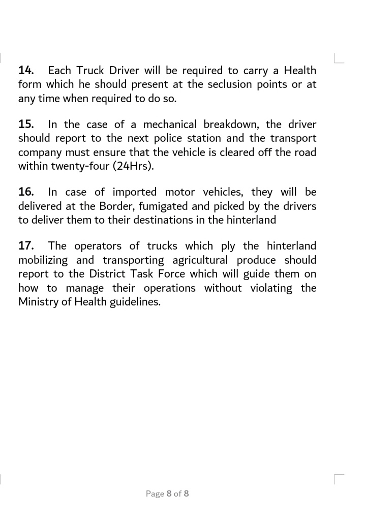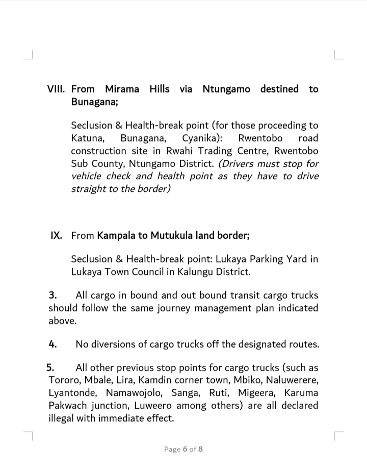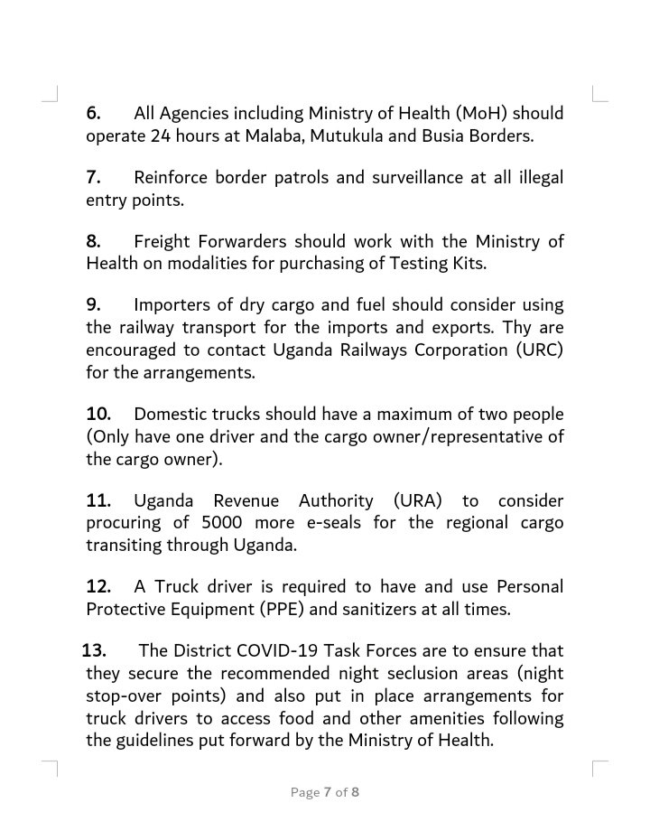 The Prime Minister’s Office has today issued instructions for truck drivers entering Uganda and given the following directives which should be widely circulated and distributed to the transport sector in neighbouring countries: