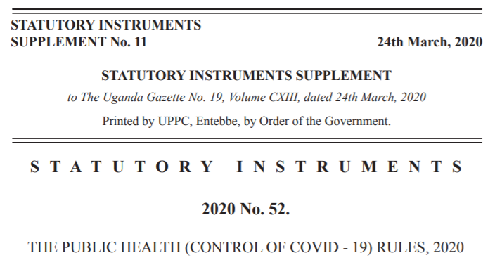 UGANDA PUTS #COVID19 STATUTE ON THE BOOKS