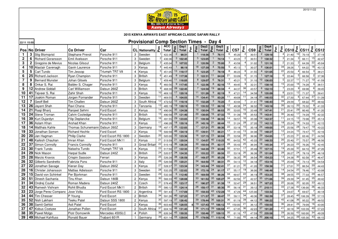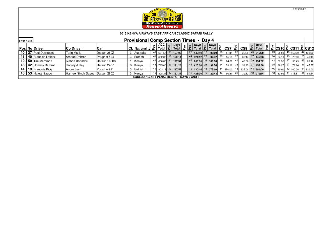 Update on standings after day 4 of the Kenya Airways East African Classic Safari Rally