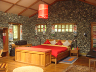 Built right on the boundary of the national park at an elevation of 6.200 feet above sea level, are the four cottages set under tropical trees right next to River Mubuku which rushing waters are audible during the day and more so at night.