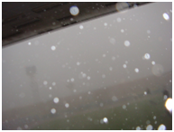 (From left to right a sequence of the storm, at first onset, then at almost full strength and then, with hailcorns flying and gale force winds the view across the stadium was totally obscured)