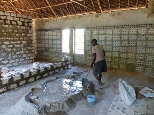 The building is a work room, office and shop for our community women and health groups who make medicinal products from neem tree and coconut oils. These products include soaps and oils which are an effective natural treatment for painful and debilitating jigger flea infections and skin diseases which afflict our community members and children in particular. The shop will also sell artwork made from recycled waste materials by our community artists. The medicinal products will also be marketed in hotels and retail outlets. All our enterprises are designed to be income generating and self sustaining in the short term and we only need donor funding for construction of buildings.