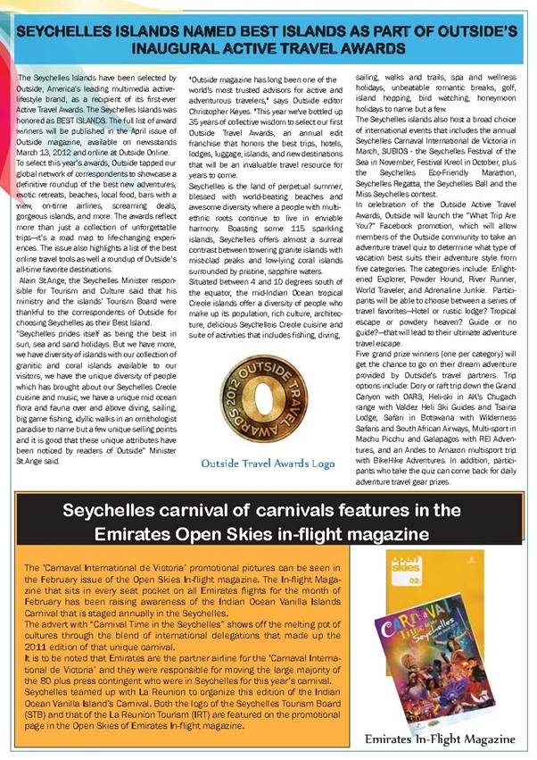 Enjoy the variety of news and updates from the Seychelles, which continues to be not just a tag line but for me Truly Another World.