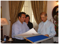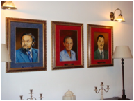 (Seychelles’ presidents since independence, Sir James Mancham, Albert Rene and James Alix Michel. Pictures in the same state room also show two former governors in their splendid uniforms and last but not least, President James Michel receives a gift from the President of the Region of La Reunion, Didier Robert)