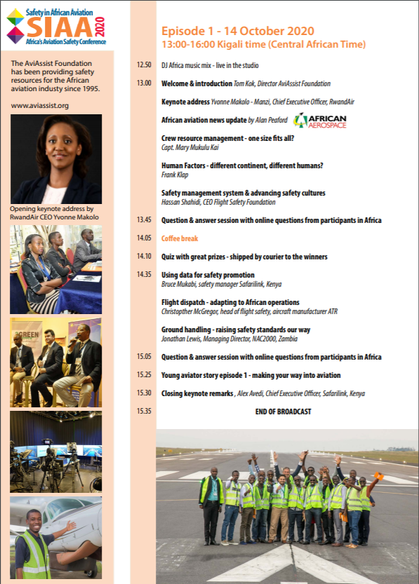 For anyone interested in attending the virtual ‘Safety in African Aviation Conference‘ which takes place on four days in Oktober, namely 14th, 15th and 21st and 22nd of October, here is an insight into the programme of the first day.
