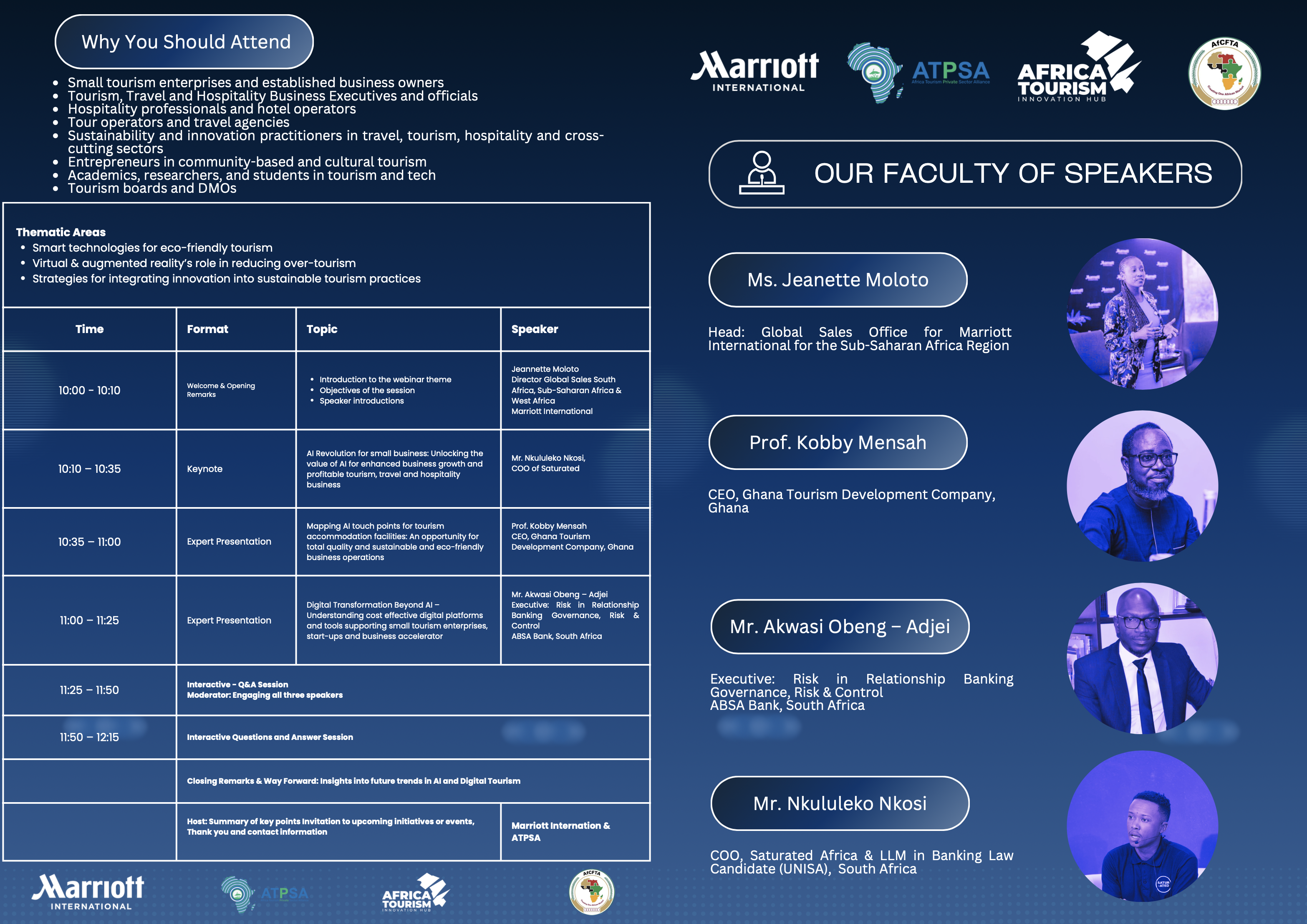Join Marriott International and the Africa Tourism Private Sector Alliance (ATPSA) for an insightful webinar: “Shaping the Future of Tourism Business Through Digital Transformation and the AI Revolution.”