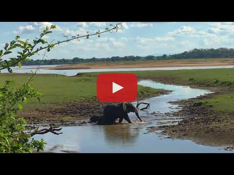 The herd had many babies. It then scattered and split with half of the elephants proceeding to cross the little water channel in front of Kafunta.