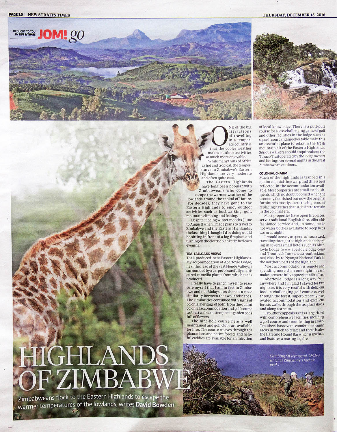 A fellow traveling writer or writing traveler, with whom I earlier this year shared a tour into the Zimbabwean Eastern Highlands, David Bowden, has just written and released another article about this trip.
