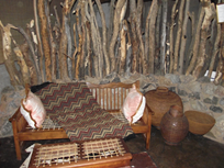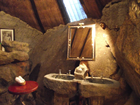Artfully blended and inserted into the rising rocks are 6 rooms and 3 suites awaiting the guests who make the effort to get away from the maddening crowds and seek out open spaces and places where they can still experience nature pure. Many of the walls actually are pure rock face and under thatched roofs can some luxurious accommodation be found, all with ensuite bathrooms and some with outdoor showers, entirely private and not overlooked by anyone but birds. All the materials used are local and their colours of course make a perfect fit when combined with the rock formations. Several small lounges offer resting places when the huffing and puffing is getting too much as guests go up and down the boulders along small paths and steep stairs hewn into the rock.